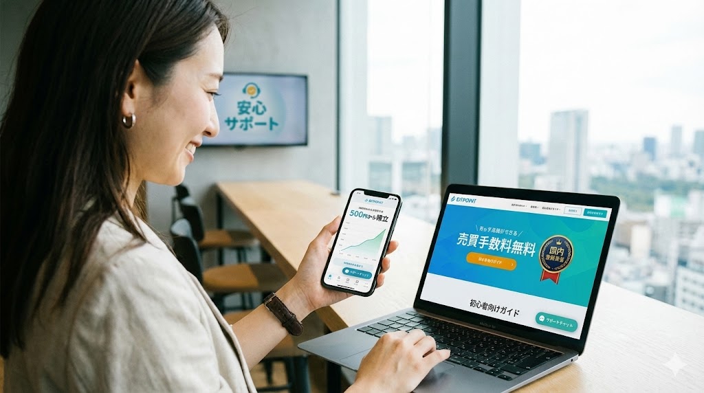 特に初心者は、口座選び次第で投資スタートのハードルが変わってしまいます。このような背景から、「まずは低リスクで始められる環境が欲しい」「実際に使ってみて失敗したくない」という悩みが出てくるのは当然です。BITPOINTはこうした悩みに対して、無料で始められる構造と丁寧なサポート、初心者向けの取引環境を提供しています。