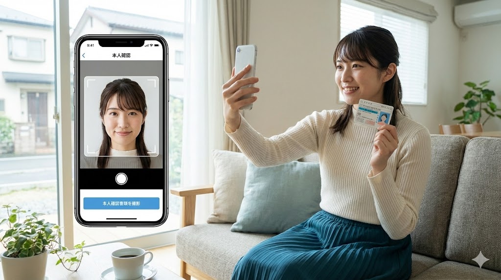 - 本人確認(スマホ撮影) 本人確認書類+顔撮影を行います。