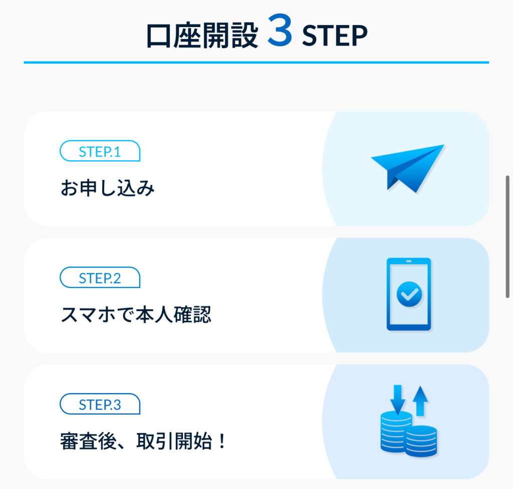 早ければ申込み当日〜数日以内に取引が可能となるケースもあり、「思い立った時にすぐ始めたい」というニーズに対応しています。